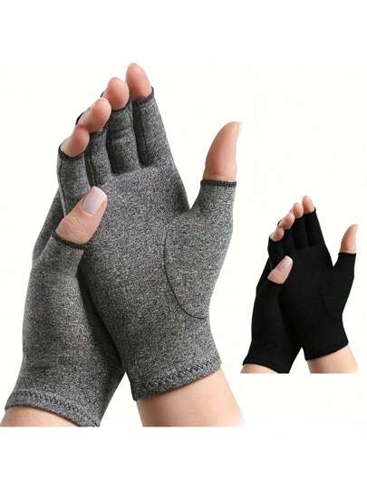 1 双男女通用压缩手套,采用压缩式无指设计和透气面料。,黑色手套 - 灰色 - 查看 10