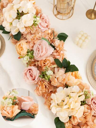 1 件 1.64*0.65 英尺/19.7*7.88 英寸人造玫瑰花墙拱门花墙板、丝绸玫瑰绣球花仿花墙板背景装饰、棕色人造花桌旗背景、派对厨房接待桌装饰、婚礼餐桌花卉中心装饰、3D 假绣球花墙饰、假花墙饰