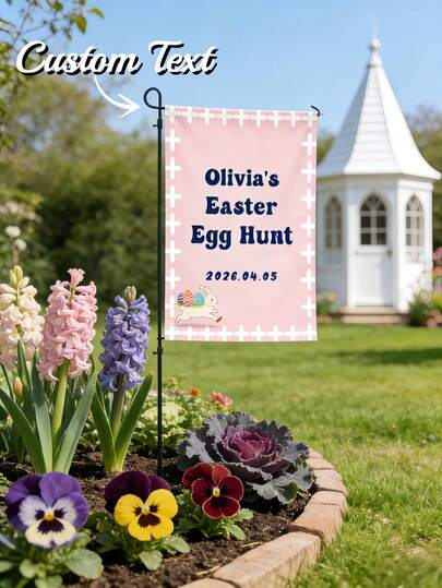 1 件定制复活节兔子花园旗,带文字 - 个性化复活节快乐庭院旗,兔子图案花园和房屋横幅,定制复活节装饰,春季假日户外装饰,前院草坪旗,门廊花园欢迎牌,农舍家居装饰 - 彩色 - 查看 6