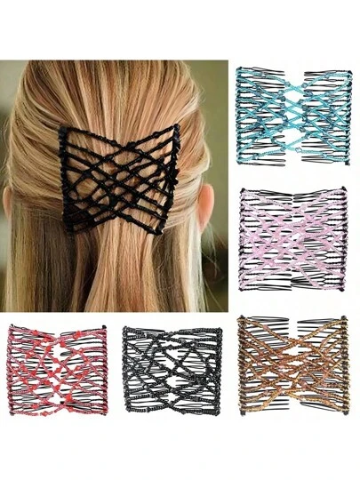 1个弹性发梳,弹性发夹,双夹多功能直发珠魔术发梳,双梳插入式发梳,美发造型工具,美发配件,理发店美容旅行必备美发产品,护发,发饰,夏季,假日