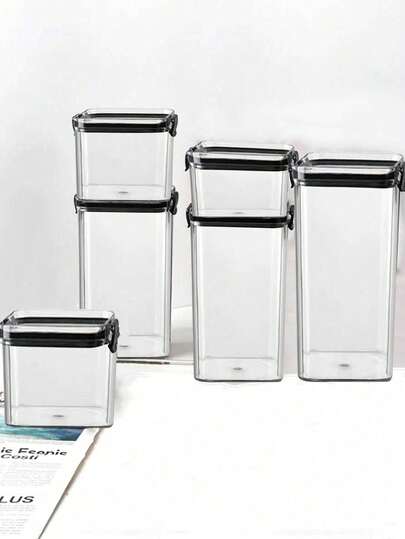 1 件带盖食品储存容器,密封食品罐,食品储存盒,用于食品储藏和整理,罐装谷物、大米、意大利面、面粉和糖,家庭厨房用品 - 黑色 - 查看 6