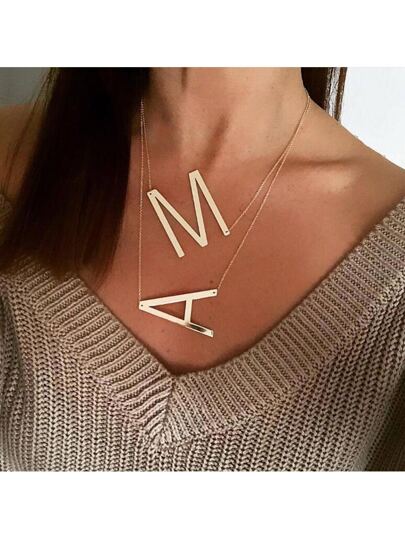 1入組女士前衛嘻哈大26字母項鍊時尚不銹鋼簡約風多用途ins風格 - 金黃色 - 查看 1
