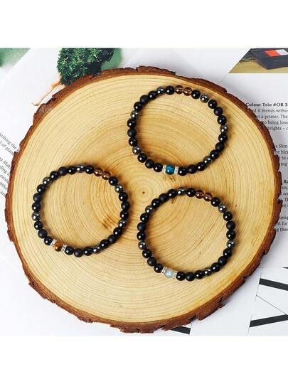 EmbraceNature 1件同理心保護手鍊男女款6mm電氣石黑曜石煙水晶縞瑪瑙拉布拉多岩能量手鍊情侶款天然月亮石湖藍虎眼石靈氣治療珠寶 - 6mm黑玻黑磨+虎眼月光 - 查看 1