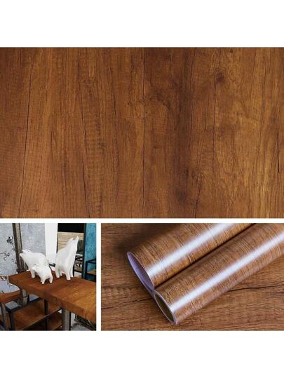 1卷10米棕色木质接触纸防水厨房橱柜壁纸撕下即贴木质贴纸适用于家具木纹乙烯基包装 - 淺棕色 - 查看 1