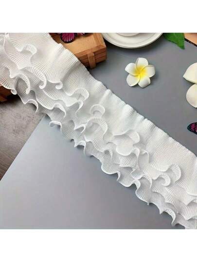 1碼四層雪紡褶皺面料帶刺繡彈性蕾絲流蘇邊裝飾散摺修邊禮服diy縫製 - 白色 - 查看 1