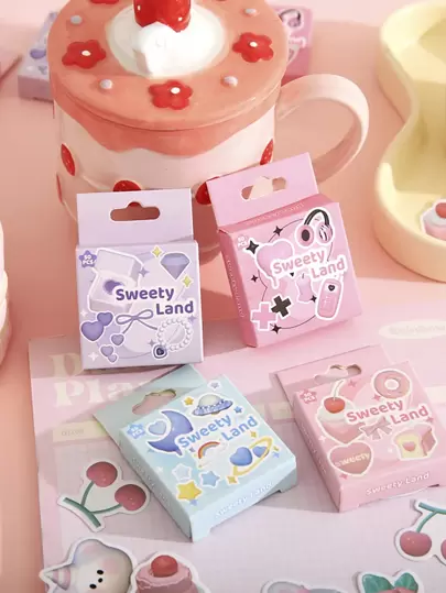 1盒/25款,總共50個不規則形狀的糖果樂園收藏系列貼紙適用於剪貼簿,日記裝飾,信封封口