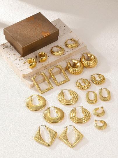 1對18k電鍍不銹鋼空心耳環,法式時尚ins風格,適合派對、約會和上班族 - 金黃色 - 查看 12