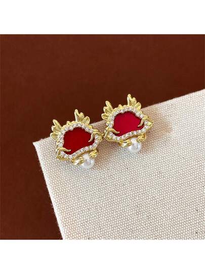 1對2024新年合金耳環,鑲嵌鑽石裝飾,復古且多樣化的設計,適合女性和女孩穿戴,適用於節日和日常穿戴 - EA10339-4 - 查看 1