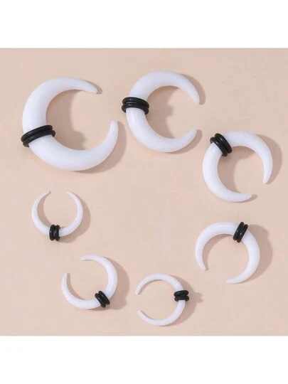 1對/2入黑白角耳擴張器(隨機顏色),丙烯酸材質,不過敏的穿孔耳擴張器,大膽前衛的龐克風格,適合擴張耳垂