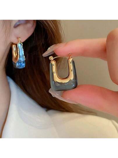 1對藝術塑料袋形耳釘,創意、極簡耳環,適合日常佩戴,送女友的節日禮物 - 藍色 - 查看 1