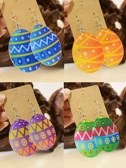 1對亞克力蛋形手繪紋理彩色復活節蛋設計耳環,適合孩子、朋友和女性的絕佳禮物 - 亞克力耳環 - 查看 7