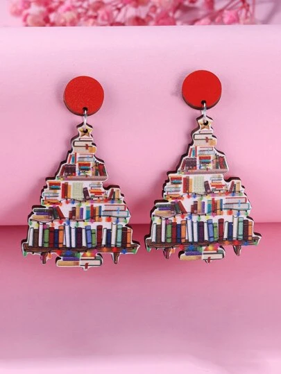 1 對卡通燈泡、書籍和聖誕樹設計甜美可愛耳環適合女士聖誕節佩戴 - 彩色 - 查看 1