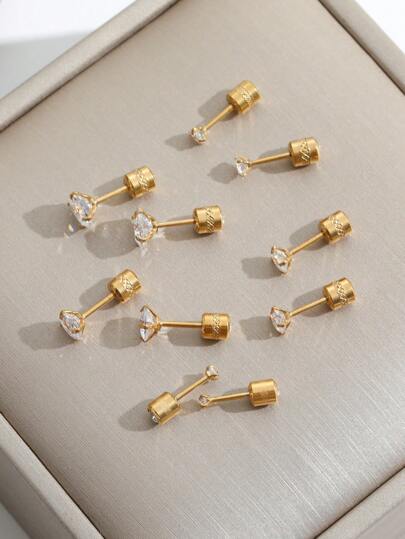 1 對男女圓形雙端方晶鋯石不銹鋼耳釘 - 金色 - 查看 10