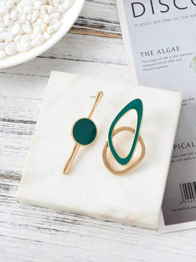 1 对欧美简约几何不对称釉面耳钉,适合女性日常佩戴 - 青碧色 - 查看 1