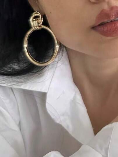 1對誇張o形耳環,有3個環,復古風格金屬耳環 - 金黃色 - 查看 6