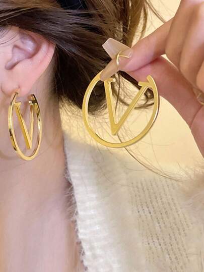 1 对时尚不对称形状金属耳环,适合女士佩戴,适合工作、聚会、旅行、街头摄影 - 金色 - 查看 1