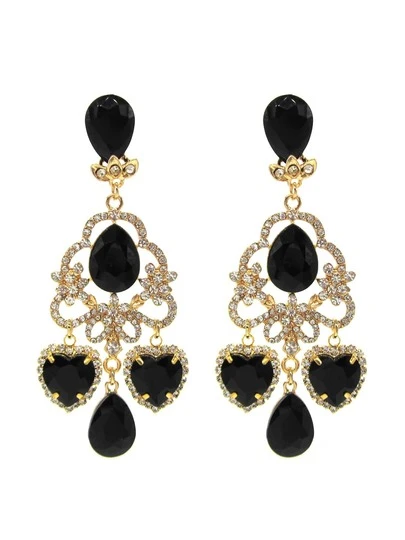 1 對時尚奢華水晶玻璃吊墜耳環適合婚禮、派對、女士 - 黑色 - 查看 1