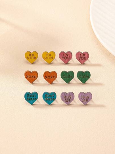 1對幾何心形木質及字母設計耳環,優雅風格適用於節慶慶典 - 粉色 - 查看 1