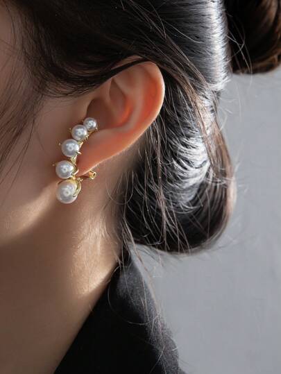 1對金色假珍珠優雅風格誇張耳環 - 金黃色 - 查看 1