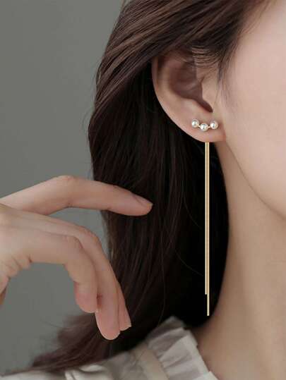 topshiny 韓國1對仿珍珠長流蘇轉換式耳環,獨特優雅設計,適用於女性的體面時尚配飾 - 金黃色 - 查看 3