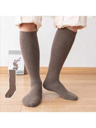 1 双男士混合暖腿袜,厚实保暖内衬,商务风格黑色,及膝袜,适合秋冬季 - 咖啡棕 - 查看 1