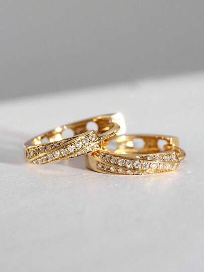 1對s925鍍18k金和立方氧化鋯夾式耳針,豪華珠寶禮物送給女士 - 金色 - 查看 1