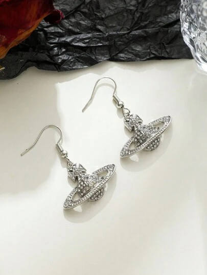 1對銀色土星行星鑲嵌水晶吊墜耳環,適合日常佩戴 - 土星耳環 - 查看 1