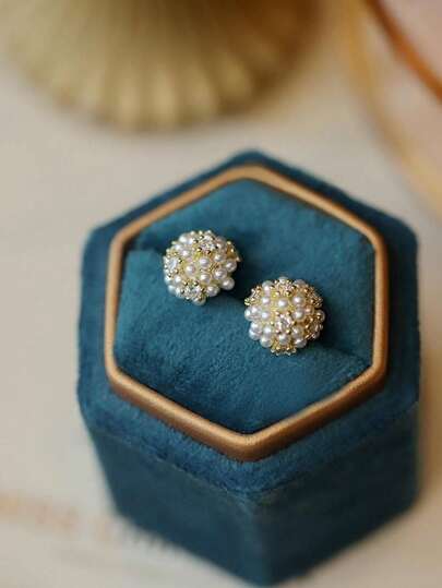 1 对女士小号仿珍珠装饰休闲百搭耳钉 - 仿珍珠耳環[1對] - 查看 1