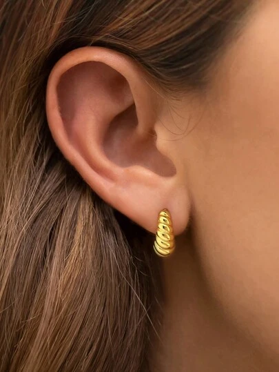 1對獨特的幾何金屬風格公牛角耳針,為女士提供s925純銀生日珠寶禮物精美珠寶禮物 - 金色 - 查看 8