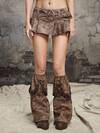 1双秋冬系带蓬松保暖白色腿套,Y2K少女风加厚柔软罗纹腿套,纯色可爱休闲街头风,涤纶绳系带冬季女款,舒适保暖