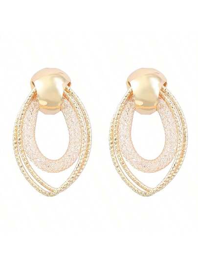 1對流行菱形網鑲鑽垂墜耳環,女士精美幾何金色珠寶,女孩禮物 - 金色 - 查看 1