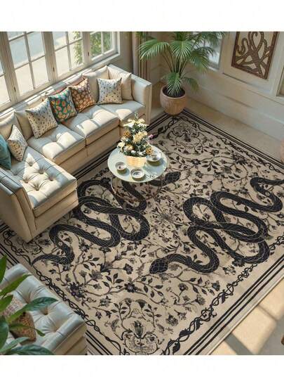 1件装奢华波西米亚复古蛇皮纹地毯,防滑可机洗,复古柔软区域地毯,适用于餐厅,大尺寸地毯也适用于办公室、卧室、客厅、玄关。