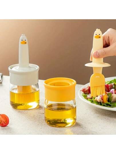 1 只帶玻璃瓶的矽膠油刷,雞形調味刷,適用於烹飪,燒烤和烘焙,廚房油刷帶有分配器適用於燒烤和煎餅,廚房用品 - 橘色 - 查看 4