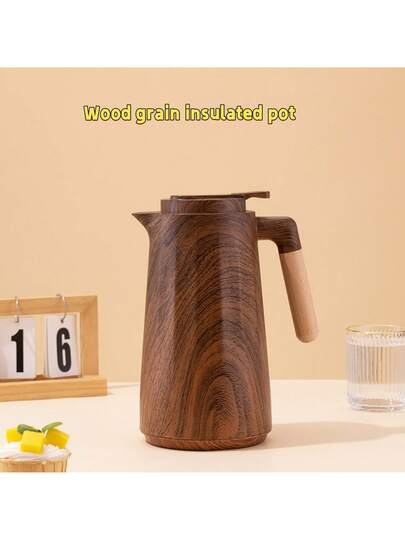 1 件 1000 毫升/33.8 盎司木纹真空瓶,玻璃内胆保温瓶,带按压按钮分配器和木质手柄,适合返校季 - 彩色 - 查看 1