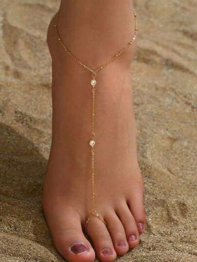 1 件 14K 镀金精致女士趾链立方趾脚链脚链脚链身体链脚链手链金色立方脚链 - 金色 - 查看 4