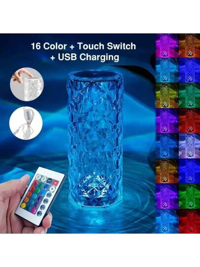 1入組16色遙控水晶玫瑰裝飾桌燈,可充電帶觸控開關,創意鑽石夜燈適用於床頭和浪漫氛圍營造,聖誕節和感恩節的創意禮物。 - 白色 - 查看 1