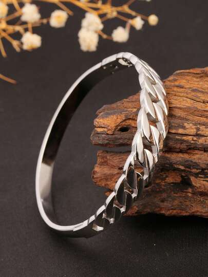 1 件 18K 镀金不锈钢不对称空心链袖口手链,复古风格,时尚百搭,适合女性日常佩戴,送给女朋友的礼物 - 銀色 - 查看 4