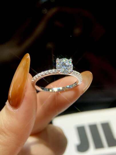 1 件 1 克拉 4 爪简约圆形设计 D 色莫桑石订婚戒指结婚戒指女士 S925 纯银永恒戒指承诺戒指周年纪念戒指奢华珠宝礼品新娘珠宝 - 銀色 - 查看 5