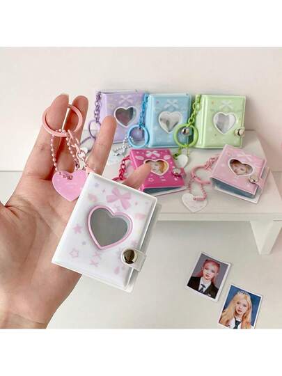 1本2英寸迷你便携相册 | 可爱卡通蝴蝶结迷你卡片相册 | 韩流偶像照片卡/学生拍立得照片收藏相册,迷你悬挂式相册 - 彩色 - 查看 10