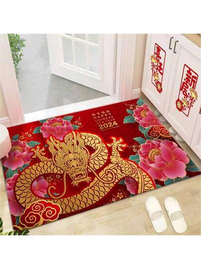 1入組2024新年風龍紋紅色地墊,可用於家居裝飾,防滑門墊 - 地毯2 - 查看 1