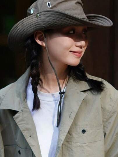 1 件 2025 新款抽绳露营/徒步帽,防晒户外渔夫帽,男女牛仔帽 - 粉色 - 查看 20