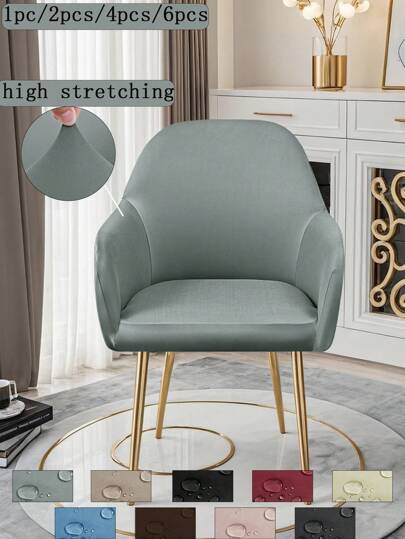 1件/2件/4件/6件装纯色牛奶丝新款弧形薄款座椅套,经典简约设计,防水(非100%防水),防尘,适用于客厅、餐厅、书房等场所,100%涤纶薄款弧形椅套,房间装饰 - 彩色 - 查看 13