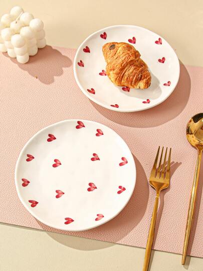 2-piece Set Of White and Red Heart Plates (1 Each, Large and Small)