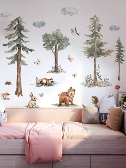 1/2/4 件多尺寸 PVC 自粘可移除墙贴,鸟巢和鸟类家族,绿叶植物,蝴蝶群,针叶植物,松树和小动物,卡通装饰贴,适用于卧室、客厅、书房、餐厅、浴室、家居墙壁装饰、房间装饰 - 彩色 - 查看 1