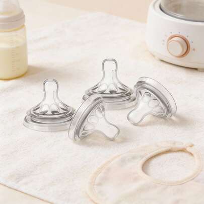 1入/2入/4入/xl 18個月以上自然嬰兒奶瓶奶嘴,5.5公分寬口徑,自然反應奶瓶替換件,快流速度的奶嘴,適用於自然系列寬口玻璃瓶、自然系列寬口ppsu瓶、自然系列寬口pp瓶 - 無色 - 查看 3