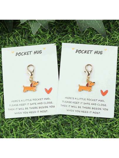 1个/2个/5个/10个装可爱腊肠犬钥匙扣,橙色狗狗造型,活泼可爱。附赠卡片,表达温暖陪伴,适合作为礼物送给家人和朋友。 - 彩色 - 查看 1