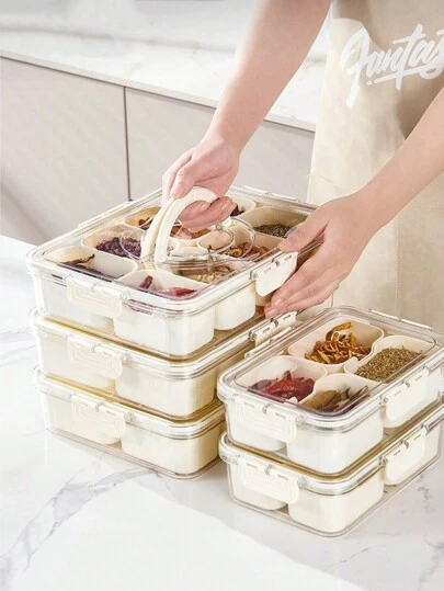 1 件/2 件带盖保鲜盒,4/8/9 格容量,分隔储物餐盘,带手柄的分隔储物盒,带可拆卸零食盒的冰箱储物盒,香料、干料、糖果、蔬菜、水果、坚果储物盒,厨房食物储物盒,适合家庭、旅行、聚会、野餐。 - 白色 - 查看 11