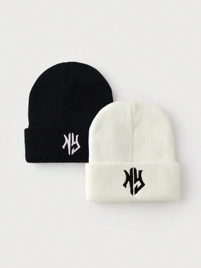 1 件/2 件男士刺绣字母图案针织帽,适合秋冬季