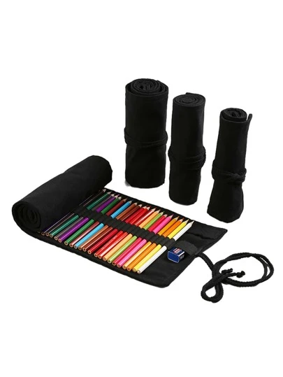1支/2支装素描铅笔套装,彩色大容量收纳铅笔盒,带橡皮擦,多功能多款式化妆刷笔收纳笔袋,带系带大容量收纳袋,适用于办公旅行,返校季,铅笔袋,书包,文具 - 黑色 - 查看 24