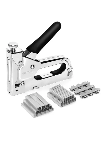 一套三合一重型订书机,包含300枚订书钉,适用于固定材料、装饰、木工、家具、门窗等。 - 銀色 - 查看 6